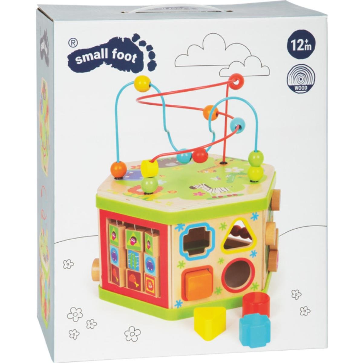 Dieser Motorikwürfel aus Holz bietet vielfältige Spielerlebnisse auf sieben Spielflächen. Ob Rechenschieber, Schiebespiel oder Motorikschleife, hier werden die Fein- und Grobmotorik und das spielerische Erfassen und Begreifen von Mengen erlernt. Neugier- und Entdeckerdrang werden hier gestillt und fördern auch die Hand-Augen-Koordination und die Kreativität der Kinder.