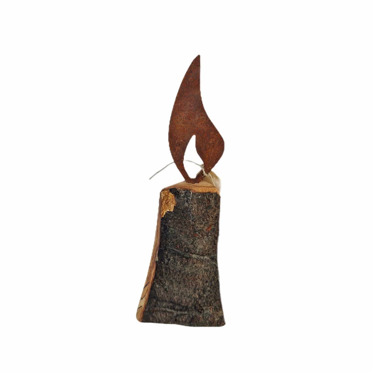 Holzstamm Kerze 22,5 cm mit Rostflamme