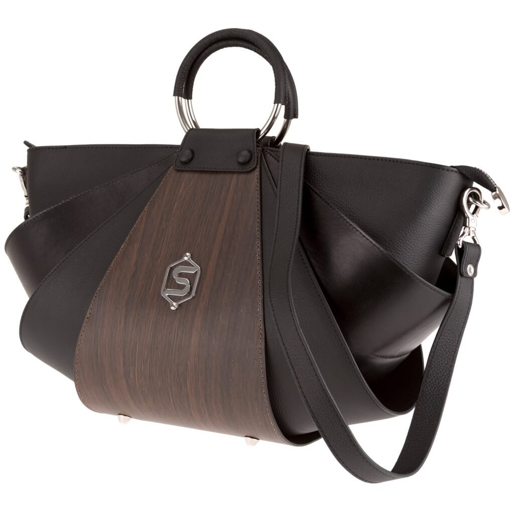 Handtasche Sebastian Sturm – Modell Amy – exklusiv mit Echtholz schwarz